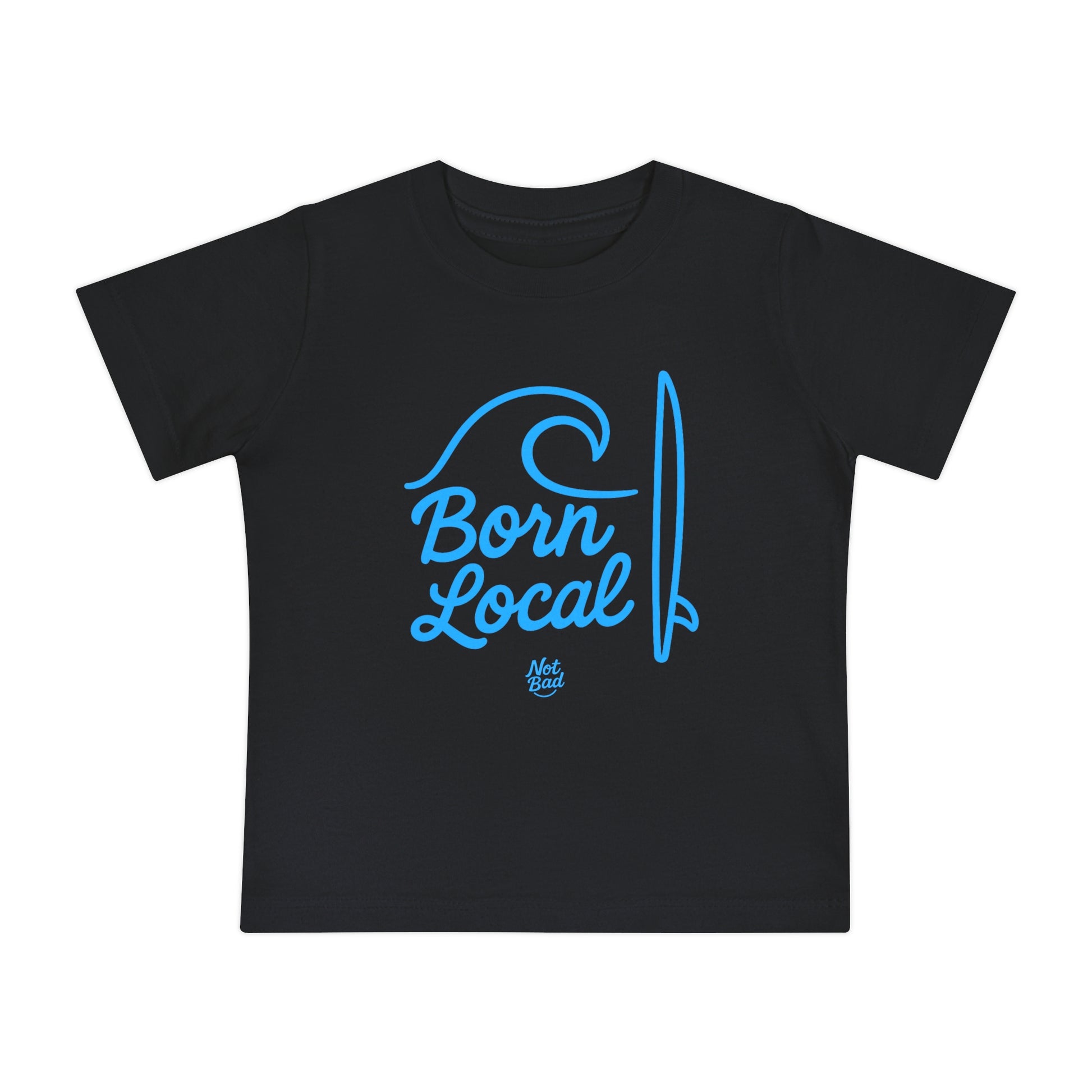 For the little beach babes who were made for salt air and sunshine. This soft, comfy tee features a bright blue minimalist wave and surfboard graphic with playful script that reads Born Local. Perfect for hometown pride, sandy toes, and summer days by the coast. Made for the next generation of locals.
