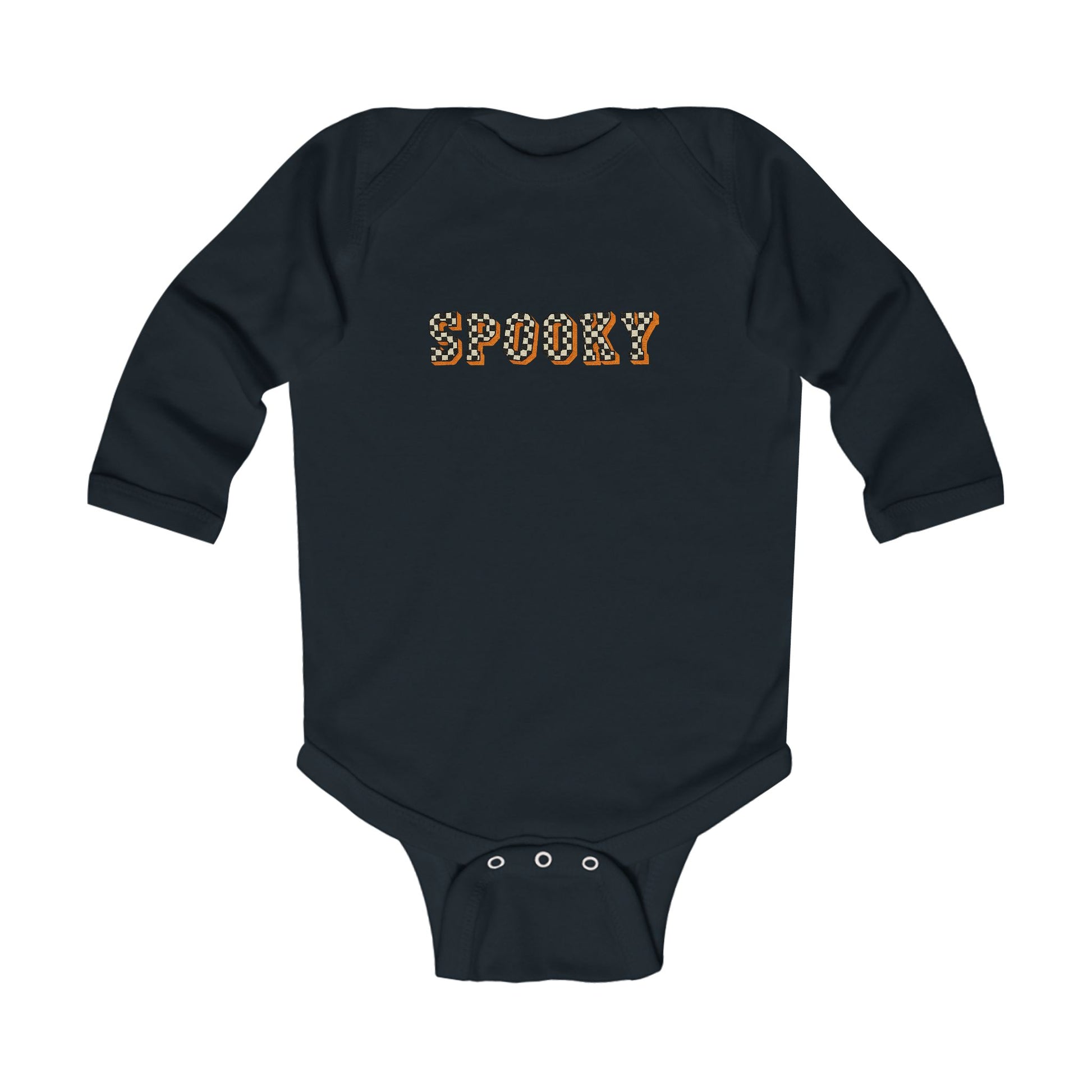 The Spooky Checkered Tee takes Halloween style up a notch with bold varsity lettering filled in with a black-and-white checkerboard pattern. Outlined in bright orange, this design pops off the shirt for a look that’s festive, fun, and impossible to miss.