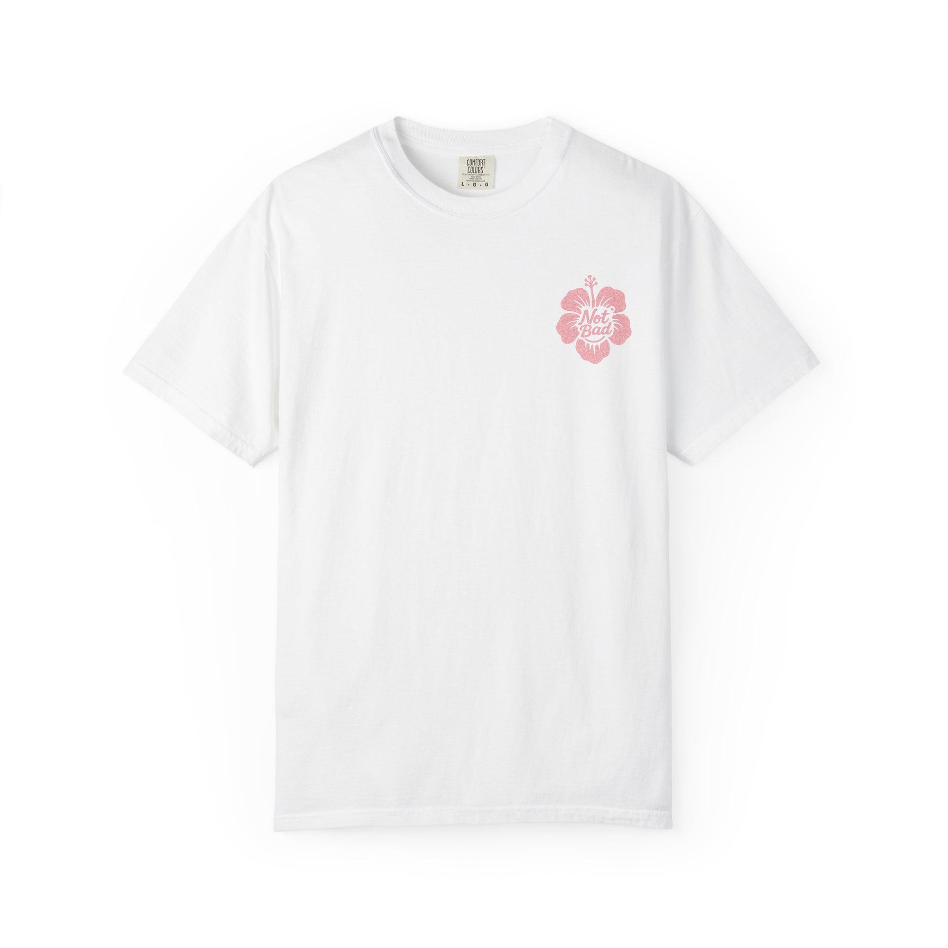 Floral meets foam in this dreamy coastal graphic featuring a hand-drawn surfboard blooming with wildflowers and crashing waves. Topped with our signature “Not Bad” script, this tee channels laid-back beach days, soft girl energy, and surf club nostalgia. Printed in blushy pink on a creamy base, it’s perfect for hot girl walks, coffee runs, or spontaneous saltwater escapes. Feminine, fresh, and effortlessly cool.